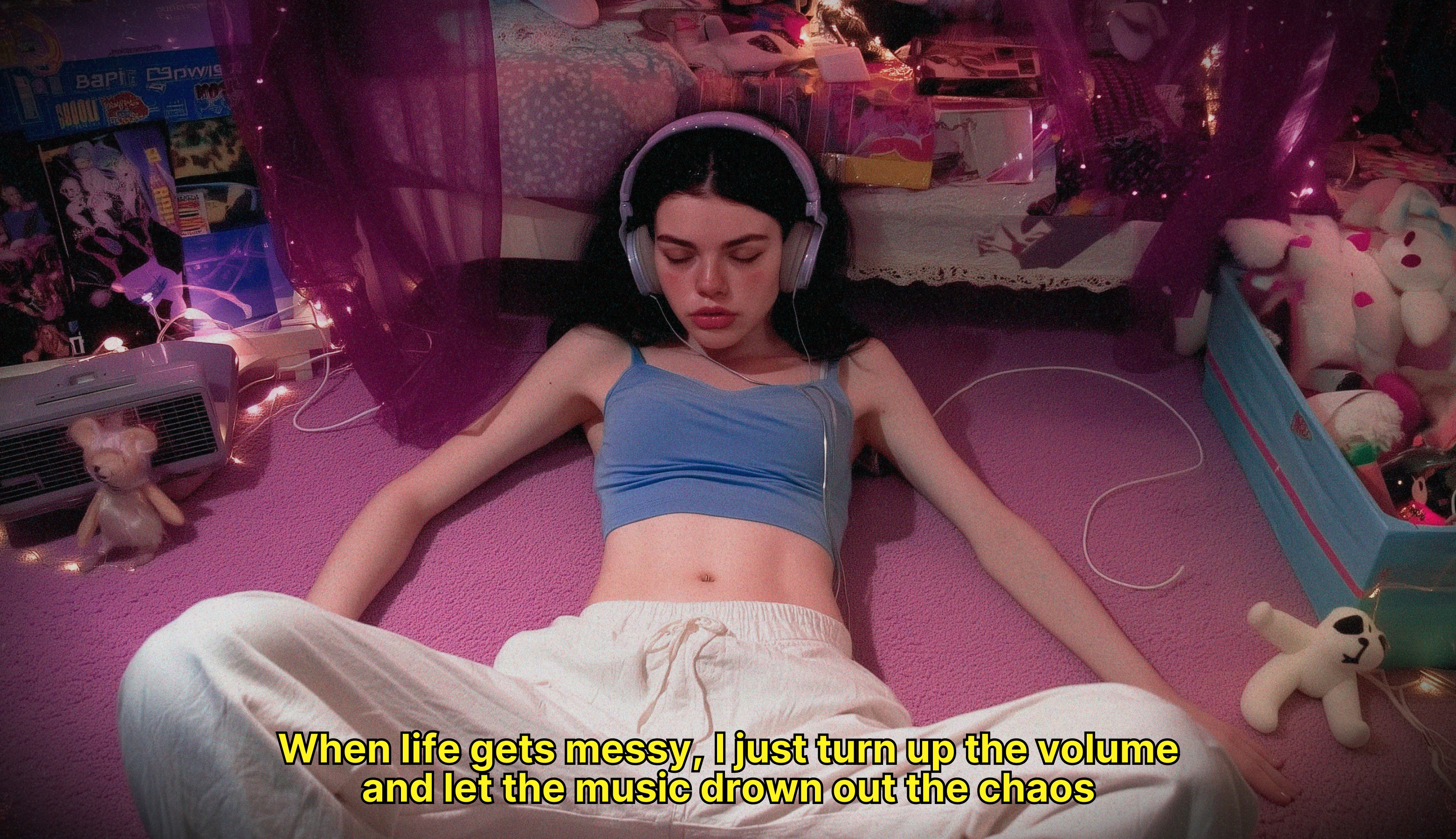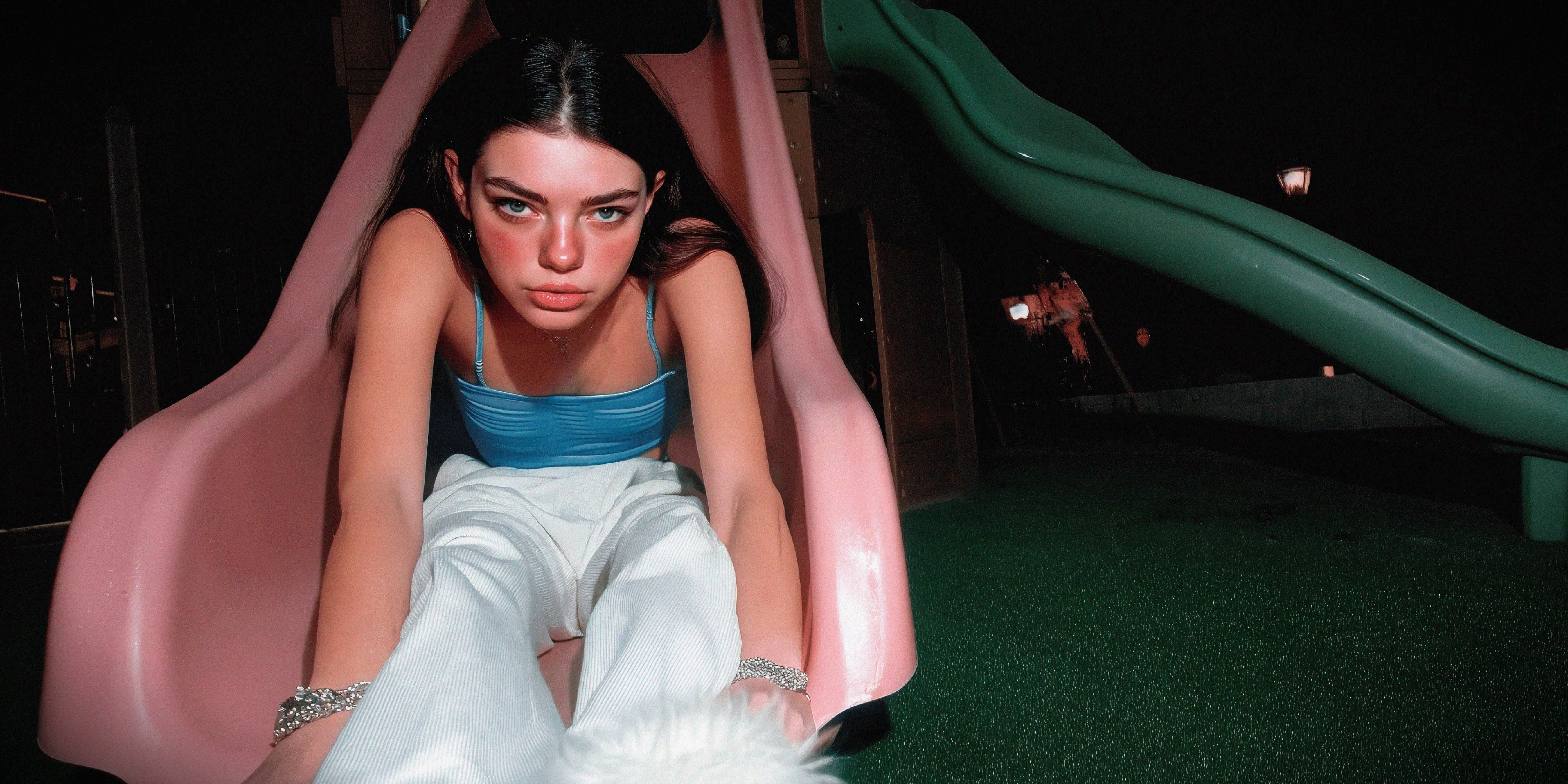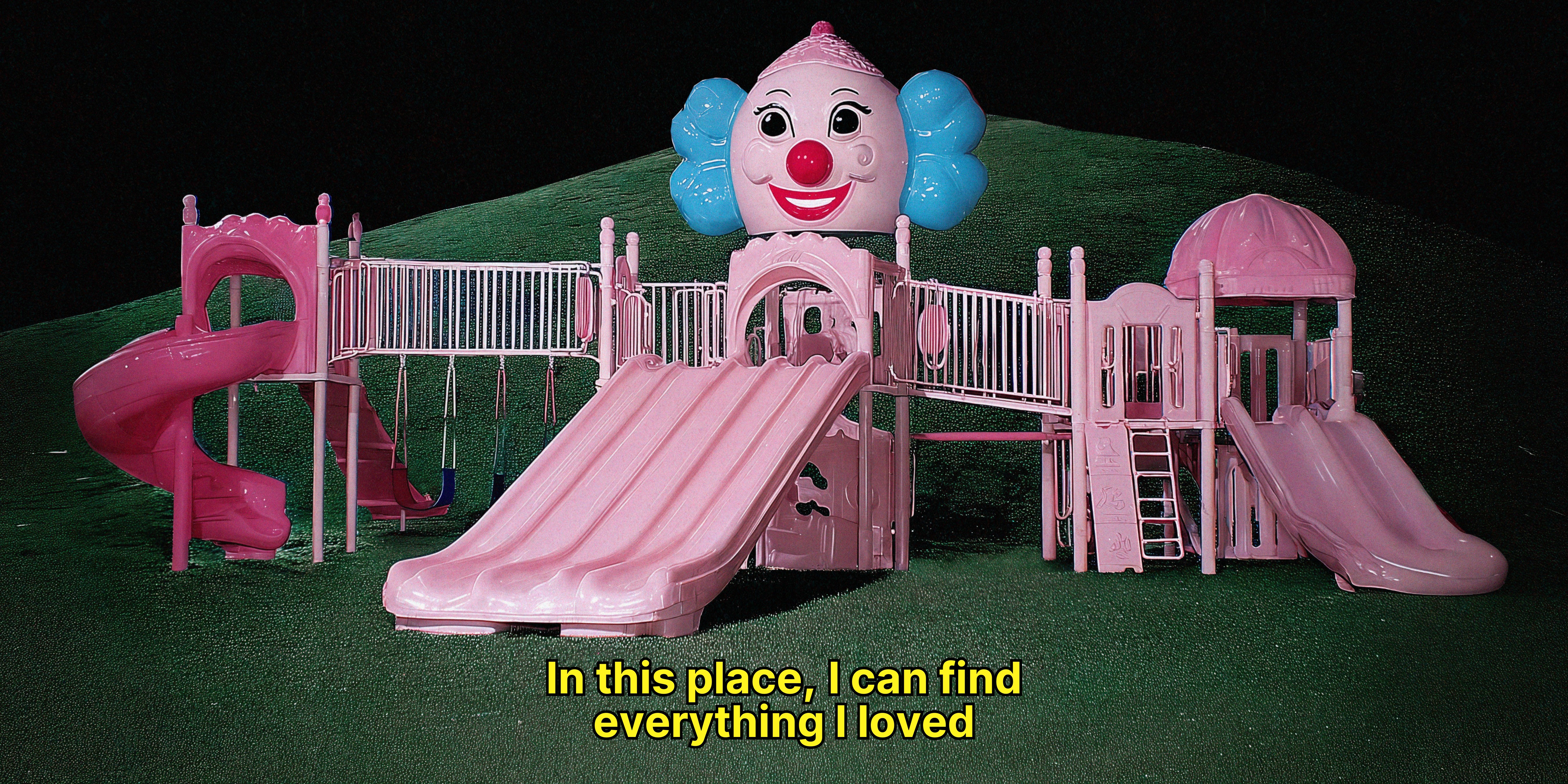 Liminal spaces reflect her inner landscape, while the ugly core aesthetic highlights the awkwardness of this tender age and the way emotions become larger than life